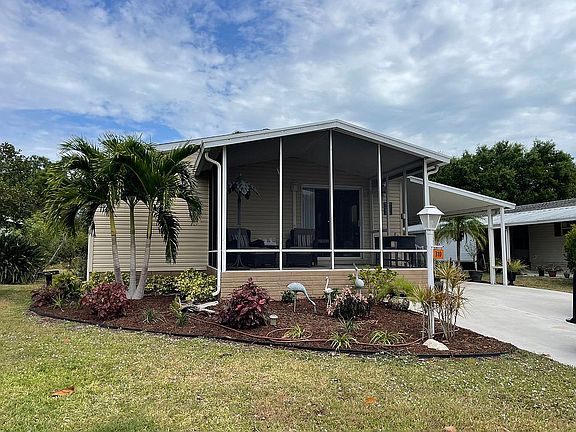 This is a beautifully maintained 3 BR/2 bath home in the fabulous community of Tropical Isles in Ft. Pierce, a 55+ community. This home features a split floor plan with spacious open living and dining areas. A complete renovation in 2021 includes wood look luxury vinyl plank flooring, stainless appliances, new all wood cabinets with silgranite sink, and granite countertops in kitchen and bath. This home is complete with a den/office, 2 screened lanais, one in the front which overlooks the lake, and the back lanai overlooks the backyard and private preserve (no backyard neighbor!!). There is a separate laundry room with washer and dryer, as well as a new water heater. The home comes partially furnished. There is a double driveway to allow for ample parking. The home also includes a sprinkler system and a storage shed. Amenities include a newly renovated pool, pickleball, tennis, shuffleboard, bocce, as well as a clubhouse with billiards, ping pong, a library, card table rooms, and gaming and dining get togethers. This is a lot leased home with a low monthly rent of $624. No taxes and no other fees. Tropical Isles is 15 minutes from the beaches, the restaurants and shops of downtown Ft. Pierce and Jensen Beach, hospitals, shopping and golf. Call 618-975-5516 or 772-284-9944 for more information or to make an appointment.