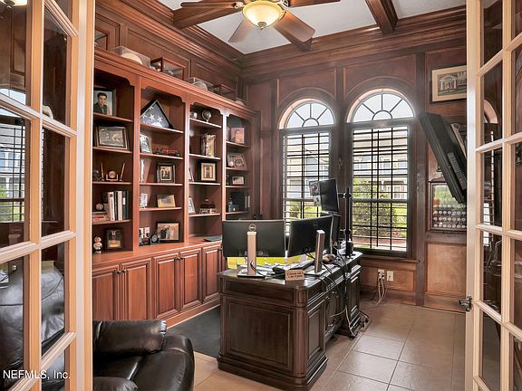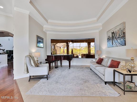 Backyard of your dreams: screened, resort style POOL, spa, gas fireplace & tiki bar! This LUXURY 4,539 SF has 4 bedrooms and 5 baths and sits on a half-acre golf course lot in gated Palencia. The living area of this home is a showpiece with special touches, such as a wood-paneled office, curved glass windows, and high ceilings that reach 20 feet in the family room. Three bedrooms, three full bathrooms on the main floor, including the spacious owner's suite (two walk-in closets and two vanities). Upstairs, there's a loft with a Murphy bed, a large bedroom suite, and two more full bathrooms. This home is ready for a new owner and has been lovingly updated with a new roof, gutters, artesian well, water softener, water tank, flooring updates, and paint inside/out. Palencia is gated, master planned community that is amenity rich. There are multiple parks and nature trails, including a boardwalk to the intracoastal where you can walk or fish. There are 3 pools and a gym, with free childwatch and exercise classes, a dog park, and 10 clay tennis courts and 2 pickleball courts. All of these amenities come with your CDD fee. You can join the Palencia club as a social or golf member and enjoy events and fine dining. Palencia is close to shopping with a Publix at the front entrance, several restaurants, hair salons, nail salons, an elementary school, and so much more. About a 15-20 minute drive to the city of St. Augustine and Vilano Beach. 2021-06-04