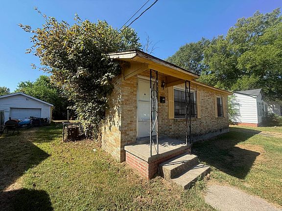 All brick home with two bedrooms and one full bath. Eat-in kitchen. New interior painting, strong air conditioning. New interior door handles. The interior wood floors seem solid and will need reconditioning. Older roof but no leaks. Solid home overall that needs revitalizing from its next owner’s personal touch. Great purchase for a first-time buyer or investment property. Just the right size home to renovate or update with very low cost. Outbuilding needs some work but would be good for extra storage and lawn care items. Property is being sold as-is; where-is with no Seller repairs.