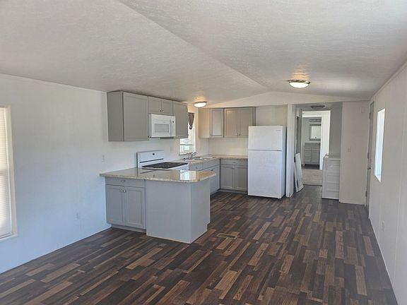 Welcome to this bright and airy 3-bedroom, 2-bath manufactured home, offering an open floor plan with abundant natural light. The well-equipped kitchen features a fridge/freezer, a 5-burner gas range, an OTR microwave, and ample cabinet space for all your cooking needs. A laundry area with a washer and dryer are included for your convenience.