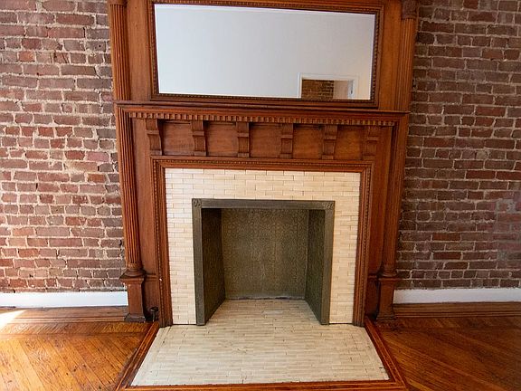 Decorative fireplaceExposed brickSouthwest exposureNatural lightHigh ceilingsPrivate outdoor spaceBrand-new flooring