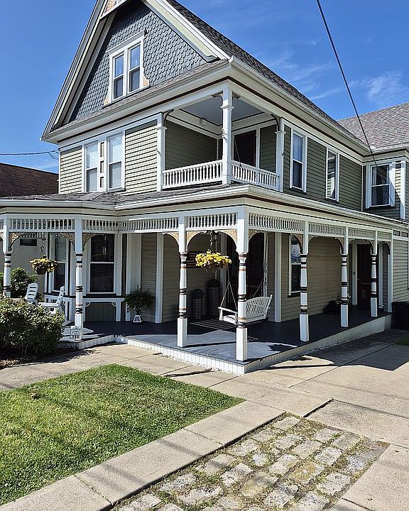 Built in 1895, this quality built and meticulously maintained Victorian home was the first house built in this quiet but conveniently located Dunmore neighborhood. The home stands with the quiet grandeur of the Victorian era, its intricate woodwork speaking to over a century of history. The original stained-glass windows catch the morning light, scattering jewel-toned patterns across the entryway. A wide wrap around front porch, supported by turned posts and accented with decorative brackets, offers a nod to the elegance of a bygone age.
