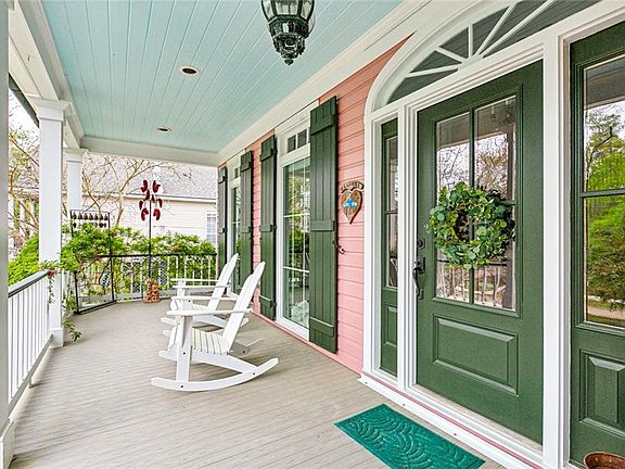 Welcome home to this intriguing and amenity-laden home just blocks from the Old Mandeville Lakefront, Trailhead, restaurants, shops and activities! The deep front porch welcomes you to sit and enjoy the breezes and tranquility or beacons you in to relax in the comfortable interior. You'll find spacious rooms including an office that could serve as a bedroom or other uses with access to a full bath. The huge primary bedroom boasts a fireplace, ceiling fan and large walk-in closet. Primary bath has updated river pebble shower and two large vanities. Kitchen was recently updated with new appliances, quartz counters, pot filler and HUGE cypress topped island. The wonderful backyard sanctuary is surrounded by brick wall with fountain and features a freeform POOL, screened area, outdoor shower, small garden areas and versatile pergola. Lots of parking! So many improvements to list! Hurry! Summer is coming!