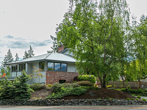 Perched on a hill, this 3-bed, 3-bath, large home feels like a treehouse. Enjoy the tops of trees and a peek at the Strait and the mountains. The beautiful updated kitchen is impressive, along with the open-concept living room with vaulted wood clad ceilings and fireplace. Private primary bedroom with expansive en-suite bath. A wood-stove in the daylight basement makes a cozy space for projects and an expansive deck is the perfect spot for some sunshine and entertaining. A wonderful NW lifestyle home.