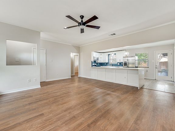 Located at the end of a quiet cul-de-sac in Carrollton, this beautiful home offers a peaceful and private setting. You'll find a bright, remodeled open kitchen with new modern lighting and an oversized kitchen island overlooking a wood burning fireplace anchoring the inviting living room. This 3 bd, 2 ba home has been thoughtfully updated with remodeled bathrooms, fresh paint, new fence and a re-imagined large pantry and bonus room. The primary bedroom boasts new paint, no pop-corn ceilings, an updated en-suite master bath with dual sinks, rain shower, gorgeous tile and double closets. The front and backyard are perfect for relaxing or entertaining with friends and family. With no HOA, you have freedom and flexibility to further make this home your own! Move-in-ready combining comfort, style and peace in Carrollton.
