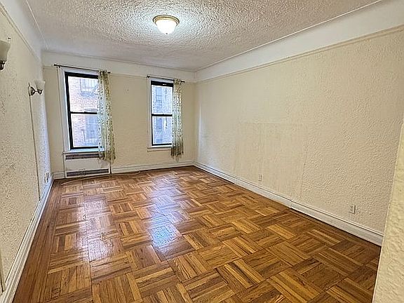 Come inside and you’ll immediately notice the high ceilings and sun-filled layout. The airy living room welcomes natural light throughout the day, while the separate, windowed eat-in kitchen provides plenty of room for everyday cooking and casual dining. A generously sized bathroom with a window and a king-sized bedroom with ample closet space complete the home. Classic parquet flooring runs throughout, adding timeless Brooklyn character.