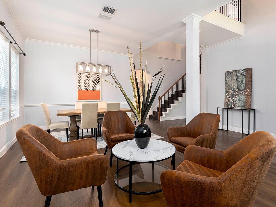 All amenities provided including kitchenware, towels, shampoos, soaps, laundry detergent, etc. All utilities and internet included. Absolutely turn-key and move in ready. Washer and Dryer included. 2 car garage for ease of access. Interim cleaning provided at guest's expense. No pets Welcome to your home-away-from-home in an incredible neighborhood in Prime West Frisco! This beautiful property is perfect for those seeking a comfortable and luxurious place to stay with family or be proud to call this your temporary home for your travels. With 4 bedrooms, 3.5 baths, and a 2-car attached garage, this home provides the ideal balance of luxury, coziness, and convenience. The property comfortably accommodates up to 8 guests with a king-sized bed, 2 queen-sized beds, and two inviting twin beds. Rest assured that you're staying in one of the safest neighborhoods in DFW. This property features a large dedicated movie room, offering a cinematic experience in the comfort of your own home with a smart projector, ideal for cozy movie nights or catching up on your favorite TV shows. Recently elegantly renovated, this property offers a modern and stylish living space. From high-speed internet to a fully equipped kitchen, we provide everything you need for a comfortable stay. With ample living areas and inviting bedrooms, this property offers the perfect fusion of space and homely comfort. Easily accessible to Grocery Stores, main highways, plenty of Restaurants, and Entertainment! Conveniently located near the TRIFECTA of entertainment districts in DFW, you'll find yourself: 8 minutes to The Star (Dallas Cowboys practice stadium, Restaurants, Bars) 10 minutes to Legacy West (High-end shopping area, Restaurants, Bars, Entertainment) 13 minutes to Grandscape (Movie theater, Massive go-kart/laser-tag/arcade venue, Restaurants, Bars, Shopping Stores) As for medical facilities, you're within: 8 Minutes to Baylor Frisco Hospital 8 Minutes to Medical City Frisco 9 Minutes to Texas Health Frisco 12 Minutes to UTSW Frisco 15 Minutes to Baylor Centennial For families traveling with children, our property is conveniently located within a sought-after school district Frisco ISD. The schools zoned to the address are known for their commitment to education and community: Elementary School: [Vaughn] Middle School: [Pioneer] High School: [Reedy] Electricity, Water, Gas, Internet and all maintenance are covered. Two car garage for ease of access. Minimum 30 day stays. Guests subject to tenant screening and will sign a temporary lease agreement. Upfront payment is required for duration of stay + duration of stay amount of security deposit. Absolutely no smoking or illegal substances. Interim cleaning provided at guest's expense. No Pets.