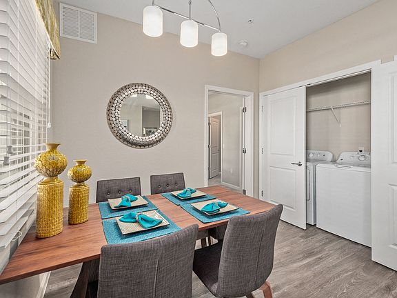 - Exterior features: Balcony, Business Center, Complementary WIFI in Resident Areas, Detached Garages Available, Granite Countertops in Kitchen and Bathroom, Kitchen Island or Peninsula, Pet Park, Pet Washing Station, Premium White Shaker Cabinetry, Stainless Steel Appliances, TV Lounge, Wood-style Plank Flooring