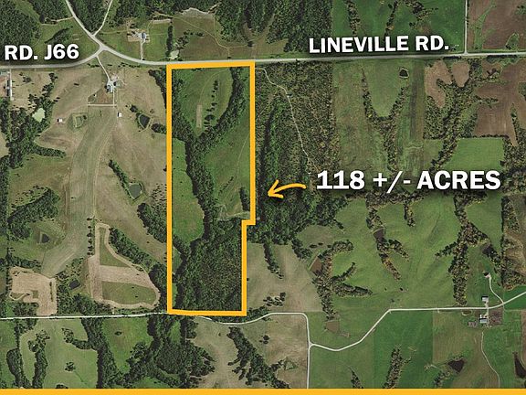 This 118 ac Parcel, is the West Portion of the larger 198 Acre Farm, currently available for purchase. This tract of land is located just West of Lineville, IA among some of the most sought- after hunting properties in the country. Not only does this area have some of the best genetics in the state, a majority of the land here is held in huge continuous tracts. There are thousands of acres under strict management exclusively for top end trophy deer. If you want to kill big deer, you have to hunt where they live, and this is a once in a lifetime opportunity to buy a farm where you have a real opportunity at world class whitetails.This farm is surrounded by huge blocks of timber and overgrown pasture, with most of the open ground to the South, East, and West in pasture. he limited row crop around this property allows the owner to utilize food plots to attract & hold deer on this property w/ little competition from the adjacent neighbors. The access on this farm is about as good as it gets, w/ entry from either the North or South boundaries. The North is bordered by county rd J66 (paved), & the South has access off of Apricot Street (gravel). The rolling nature of the property allows for strategic access routes which makes this property feasible to hunt on any wind. Over 6.75 acres of food plots are planted to a mix of brassicas/perennial clover, corn, & soybeans; setup to perfectly maximize morning/evening hunting opportunities.
