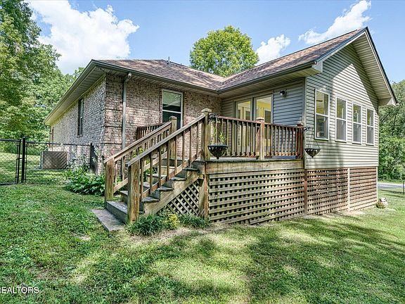 Brick Basement Ranch with two car garage on main level and garage access to the basement. NEW ROOF 2025. Entering from the main level garage into a foyer area with pantry and the laundry room. Stainless appliances in the kitchen that opens to the living room area and looking out into the bright sunroom. Split bedroom floor plans has two master suites on each side with large walk in closets. Guest Half bath near kitchen and living room. Open deck off the sunroom leading into the fenced yard. Linen closets and storage in convenient places along with the full basement. Central Vacuum system, back up generator, tankless water heater. Half Acre lot. Enjoy the amenities of Lake Tansi Village in the Golf Capital of Tennessee, Cumberland County. Convenient location to Knoxville, Nashville and Chattanooga. Many state parks with hiking and fishing near the community. Take a personal tour