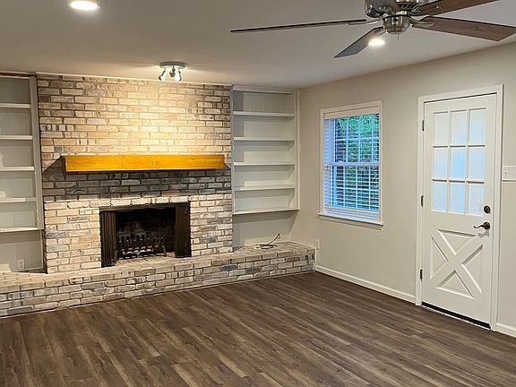 WOODS ELEMENTARY SCHOOL W/ TWO MASTER BDRMS! Completely Remodeled Family Home 2 blocks from Woods Elementary inside the Loop! 4 bedrooms. 3 and 1/2 bathrooms. 2400 sq ft. FIRST FLOOR: open concept floorplan- kitchen, living, dining. Kitchen w/ quartz countertops, moveable island, pantry, and stainless appliances including gas range. Brick fireplace with built-in shelving. Media wall outlet. Laundryroom. Guest 1/2 bath. First floor bedroom with en suite perfect for mother-in-law quarters or houseguests. Coat closet. Large under-stairs storage closet. SECOND FLOOR: master bedroom with walk-in closet and en suite with double sinks. Additional two bedrooms share a hall bath with double sinks. Linen closet. Walk-in attic storage area. Bedrooms all have ceiling fans and are a generous size. All bathrooms have granite countertops. LVP flooring throughout house except upper bedrooms are carpeted. Beautiful oak stairs. Large fenced backyard with lots of trees and patio. Two-car garage. Lovely walkable neighborhood. One year lease. Tenant responsible for utilities and yard maintenance. Message us for additional applicant requirements.