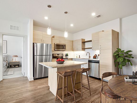 Experience the allure of the Orlando area at Domain apartments and homes infused with unique energy. Our apartments feature gourmet kitchets with granite countertops, stainless steel appliances, and custom kitchen islands in select homes. Find plank-style flooring and large walk-in closets. You'll never get bored with what's in your backyard Walt Disney World(R), Margaritaville Resort, Sunset Walk, and more.