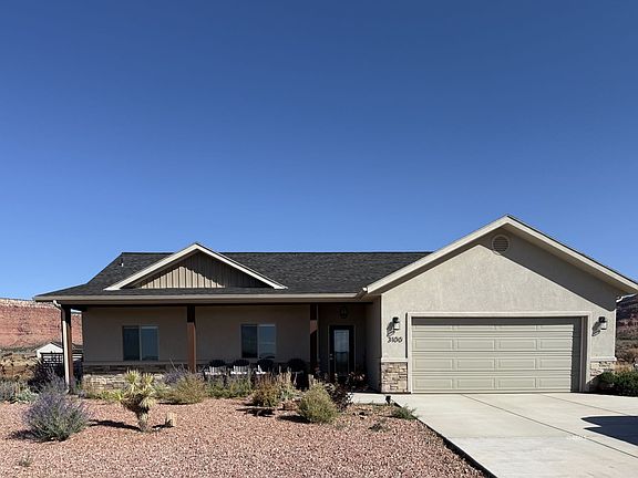 3100 E Ryker Ct. Crimson Estates: This like new 2024 immaculately kept home features 3 bed / 2 baths plus a new office addition! Spacious open floor plan perfect for entertaining. Upgrades include LVP Flooring throughout the main living areas and Granite Countertops in the kitchen. Large sliding doors invite you to the outdoor covered patio with incredible views of the Vermillion Cliffs! Above ground swimming pool is perfect for a dip on warm summer days. Super cute Shed/Pool House included! Partially landscaped with local vegetation and garden tubs are included for those with green thumbs! Lots of shelving in the garage for extra storage!