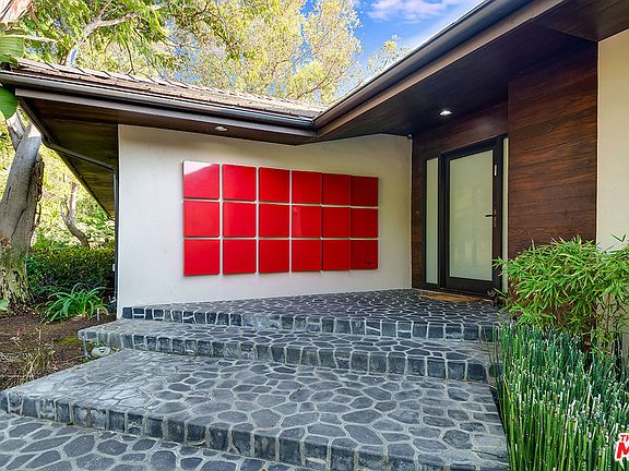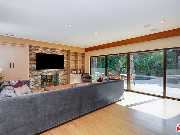 Amazing contemporary Fryman Cyn. estate set behind gated walls, truley one-of-a-kind with total privacy on a large corner lot in Studio City's most desired area. Sprawling single-story with bamboo oors throughout the open plan. Spacious living room with built-ins, stacked stone replace & view to outdoor paradise where palm trees encircle the pool, spa, built-in BBQ & cabana lounge. State-of-the-art kitchen boasts marble countertops, custom cabinets, Viking appliances incl. 62-inch range & pro-style hood, walk-in pantry & wine fridge. Shoji screens open to reveal a dining room with cantilevered buets. Enviable master retreat features raised tray ceiling, replace, media center & pool access; built-in cabinetry leads to 2 walk-in closets (cedar-lined) & enormous spa-like en suite with conservatory windows above soaking tub & steam shower. Bright guest beds & designer baths. Room o master serves as central hub for Control4 (TVs & HVAC), security cameras & central alarm system.