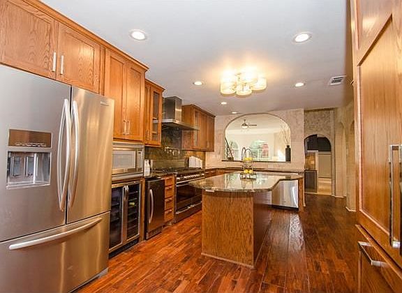 A truly unique home with wonderful features! 3/4 of an acre and has privacy and huge potential for expansion. New 4 car garage with plenty of side storage. Master bed up for privacy, 3 beds down. Upgraded kitchen: granite counters, stainless appliances, wine fridge+icemaker. Hardwood floors and tile throughout. Garage conversion to game room+utility room. Huge master suite w/ modern tub, massaging 16 head shower, plenty of vanity space. Front entertaining area w/ fridge, built in grill, and water feature.