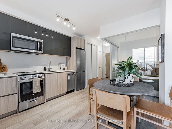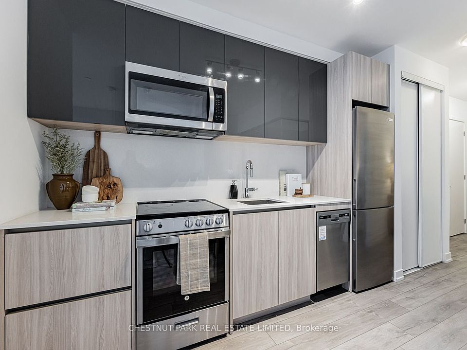 Bright, like-new condition 2 Bed/2 Bath with parking in versatile location to walk, bike, transit or drive! Overlooking peaceful courtyard with parkland greenery in the distance. Peaceful nature walks, bike rides & dog park at doorstep with choice of Northview and Downsview Parks and trails. <5 minute drive to Downsview subway (to Union in <30 mins), No Frills & Metro grocers, shops & restaurants. <10 min drive to Yorkdale Mall, Pearson International Airport in <15 mins. Suite features efficient layout that feels larger with benefit of lower maintenance fees. West view is bright, green & peaceful overlooking trees. Finishes include modern light materials including quartz kitchen counter, stainless steel kitchen appliances, front-loading washer/dryer and laminate floors throughout. Versatile split plan allows for privacy/sound barrier between bedrooms and bathrooms close by. Amenities include 24 hr concierge, fitness centre, lounges for co-working, entertaining with kitchen/dining & outdoor patio! Enjoy living surrounded by parks, transit and conveniences nearby.