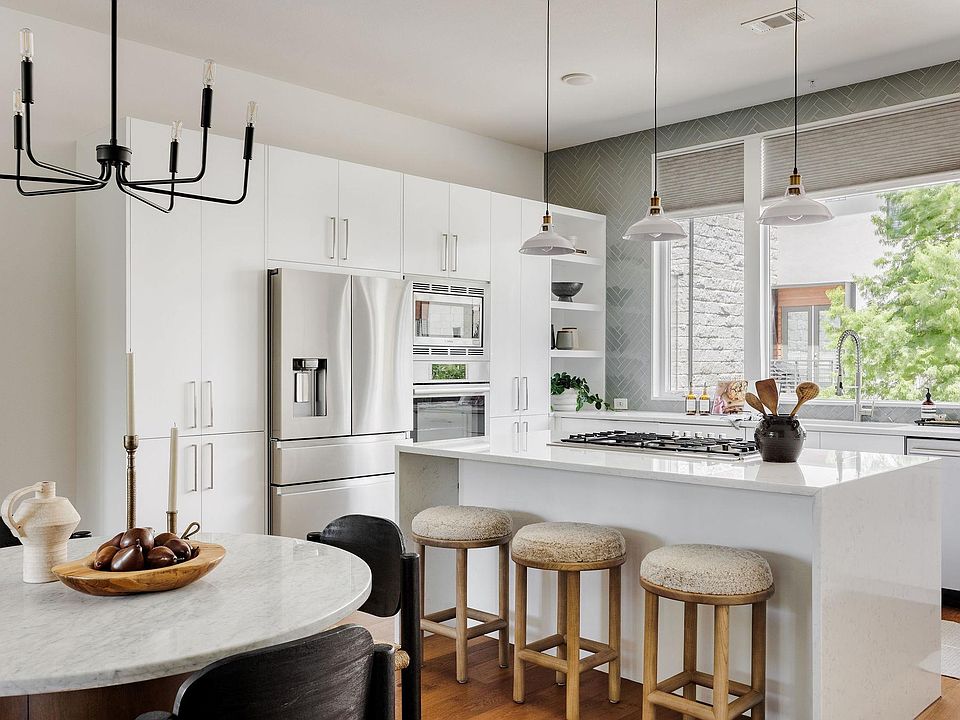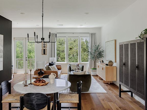 LAAN Residence No. 6 is a sophisticated, light-filled modern 3/3.5 home tucked within one of 78704’s most architecturally curated secluded communities with stunning pool and dog park. Impeccably finished and ideally positioned, this three bedroom three and a half bath residence offers refined living across three thoughtfully designed levels, just minutes from South Lamar and Zilker. The first floor features a private en suite bedroom that can serve perfectly as a guest retreat, home office, or flexible studio space. Upstairs on the second level, sunlight pours into the open concept living, dining, and kitchen areas. A crisp white chef’s kitchen with quartz countertops, Bosch appliances, and an oversized island anchors the space, while a sleek powder room and wide plank wood flooring wrapping all spaces elevate the overall design. The third level is dedicated to rest and privacy. The primary suite is a true sanctuary, serene and expansive with treetop views. The ensuite bath stuns with an oversized soaking tub and wet room, dual vanity, and a glass enclosed walk-in shower creating a spa-like atmosphere. An additional guest suite with its own private bath completes the top floor. Set within a private, tree lined enclave, LAAN Residence No. 6 offers access to exceptional community amenities including a beautifully designed pool, sprawling dog park, and landscaped walking paths and guest parking. A two car parking setup and dedicated laundry space provide everyday ease and convenience within the residence itself. This is design forward living in the heart of Austin, where every detail has been carefully considered.