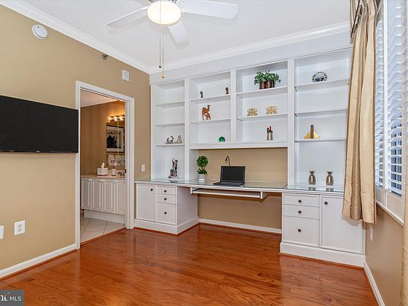 Prepare to be captivated as you step into this impeccably upgraded 2 bedroom, 2 bath condo where luxury living takes center stage. The layout seamlessly blends elegance and functionality, adorned with high-end finishes and custom touches that elevate every corner. The gourmet kitchen beckons with its Takoma maple cabinets, absolute black granite countertops, custom tile backsplash, and a spacious pantry featuring convenient roll-out trays. Stainless steel appliances, including a built-in microwave, complement the culinary haven. As you venture further, crown molding graces the ceilings, while real hardwood floors in the living room, dining room, and office/guest room exude warmth and sophistication. The marble foyer, upgraded mirrored closet doors, and upgraded faucets throughout add an air of refinement. Custom closet systems and built-in cabinetry offer seamless organization and a timeless aesthetic. Bask in the natural light that floods the east-facing enclosed sunroom, creating the perfect backdrop for relaxation and entertaining. The lavish primary suite promises a sanctuary with ample space for a king-sized bed, an abundance of closet and storage options, including a walk-in closet, an additional double closet, and fabulous built-in cabinetry that creates a sense of cohesivness and can help declutter your space while adding a touch of sophistication. The primary bath boasts a luxurious walk-in shower with glass doors. Beyond the four walls of this exceptional condo, a world of sociability awaits in the sought-after Overlook Building, one of the most desirable residences in the community, built in 2003. Professionally managed on-site by a dedicated property manager, this home offers a lobby level garage space for added convenience and one of the lowest condo fees in the community. Enjoy the gorgeous party room for social gatherings or bask in the serenity of the expansive outdoor balcony. 24-hour security ensures peace of mind, while the proximity to Clubhouse II offers unparalleled convenience. The larger Leisure World community itself is a haven of engaging activities boasting two clubhouses, indoor and outdoor pools, and an optional golf course membership. Over 85 clubs cater to diverse interests, fostering a thriving social scene where connections with like-minded neighbors flourish. Whether you seek an active lifestyle or a relaxing retreat, this exceptional condo promises an elevated living experience that seamlessly blends luxury and leisure.