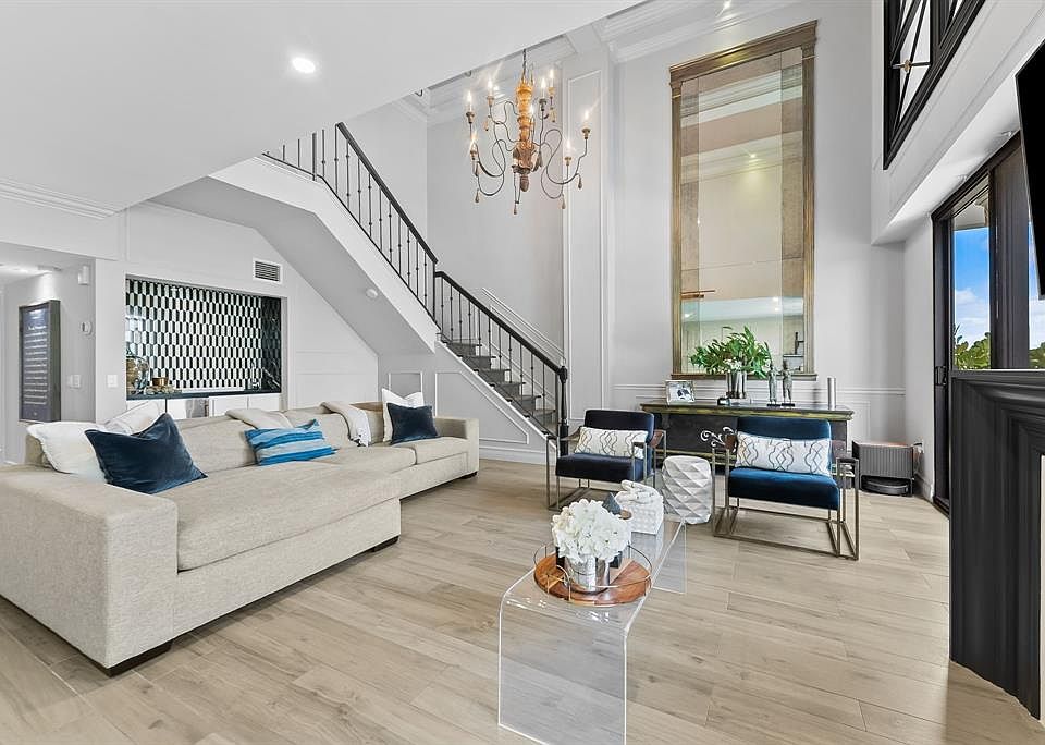 Two fireplacesFront lanaiQuartz countersOpen concept floor planJennair appliancesSpacious primary suiteSoaring ceilings