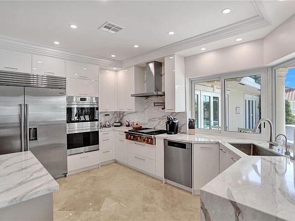 Stunning single-floor 4 BR/4.5 Bath beauty in Coral Key, Lighthouse Point with Spectacular views all the way down the canal, highlighted by the greatest sunsets. One canal from the ICW, NO BRIDGES, open access to ocean, private dock, minutes to Hillsboro and Lighthouse Pt Inlets. Brand new modern kitchen with large island for entertaining, opens to expansive Great Room. Formal Living Room and Dining Room in the front of the house. Primary BR Suite with large walk in closet, sitting area/Office, and spacious en-suite Bath with separate shower and soaking tub, all with complete access to yard, heated pool, 34' dock, and those views! Marble and Tile Floors throughout. Impact doors and windows throughout. 16,000+ SF corner lot for added privacy.