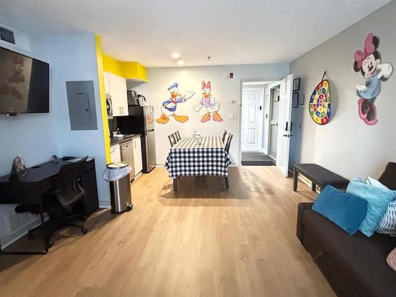 HOA fee includes all utilities—water, electricity, cable, and internet. This is a money-making machine! Fully remodeled, furnished, and zoned for short-term rentals, it sleeps up to 6 guests. Owners can self-manage or hire a management company without restrictions. Just 2 miles from Disney, guests enjoy resort-style amenities: pool, jacuzzi, grills, game room, and more. Brand new waterproof vinyl flooring just installed! Don’t wait—call today for a private showing!