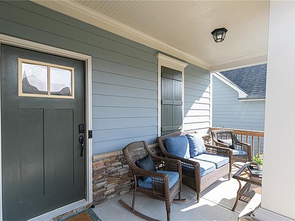 Cozy stone fireplaceGleaming hardwood floorsLarge islandBeautifully landscaped fenced backyardRocking-chair front porchOpen airy layoutStainless steel appliances