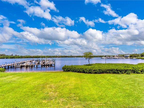 Drop anchor at Tarpon Bay! This stunning condo is NOT a SAIL-BY! Here’s a REEL waterfront condo for you and an available community dock for your vessel (up to 60’). Situated along protected Kitching Cove, via the North Fork of the St Lucie River, this stylish dwelling is ship-shape from stem to stern. AHHHoy when you see the glorious water view as soon as you step inside. An open galley showcases custom cabinetry and extended counter spaces. The finished balcony overlooks the South and North docks that bookcase the wide cove view. Breathtaking sunsets and enjoyable wildlife sightings. Exceptional primary bath with custom tile and walk in closet with clothing cabinets. A utility room has a full size washer and dryer and more storage. Guests enjoy a remodeled bath too. The unit is equipped with accordion shutters. A gear storage cage is near the elevator. Building E has 18 units with Milestone and structural reviews complete and no assessments. SEA you soon! https://vimeo.com/454086812