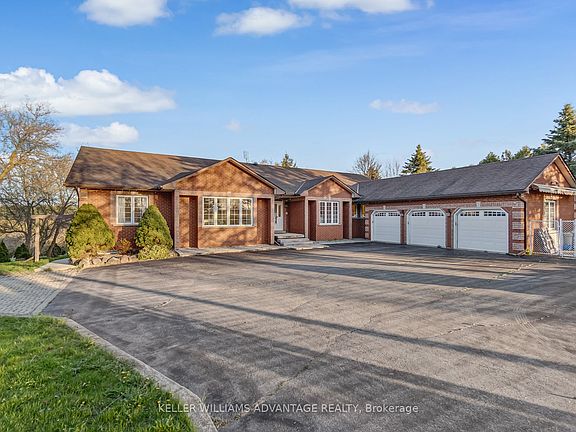 Set on 7.5 acres of picturesque countryside, this impressive 7,325 sq ft estate combines timeless elegance with modern comfort. Spread across two expansive levels, the home features engineered oak hardwood floors, a stunning herringbone foyer, grand arched entryways, and freshly painted interiors throughout. Upgrades include new bathroom countertops, sinks, and stylish hardware finishes for a contemporary touch. With 9-foot ceilings on both levels, the open-concept layout offers exceptional versatility-featuring 6 bedrooms, 6 bathrooms, 2 full kitchens, and 2 laundry rooms. The fully finished walkout basement is its own self-contained living space with a private kitchen, laundry, and multiple separate entrances-ideal for rental income, multigenerational living, or an in-law suite. Designed for those who love indoor-outdoor living, the home offers multiple walkouts leading to a wraparound deck overlooking the grounds. The property also includes a 24' x 40' outbuilding (ideal for shop/garage space), three storage sheds, a charming gazebo, and a peaceful pond complete with a paddleboat. A perfect blend of sophistication and rural tranquillity-your private retreat awaits.