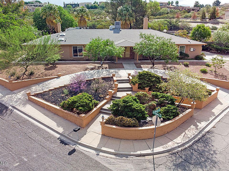 This beautiful and spacious home sits on over 1.5-acre corner lot & has lots of extras. It features Saltillo tile throughout, formal dining /living rooms, pool room, study, granite, skylights, hardwood flooring in family room, alarm system, in ground pool, workshop, drip system and a newer 7 KW solar system (24 PV Panels). This open floor plan home also has a 2-sided fireplace in the formal living room/study. The spacious gourmet kitchen has stunning granite with an electric range, microwave, double ovens and all stainless-steel appliances with plenty of cabinets and built-in cutting board. In the master bedroom you will find a wood burning fireplace and French doors that give access to the enclosed back patio and the master bath has dual sinks and closets, shower stall with beautiful tile counters. The secondary bedrooms are complete with fans and their own bathrooms, one with a tub and the other 2 with shower stalls. There is an alarm system and a Ring video doorbell with 3 cameras. Newer Anderson windows.