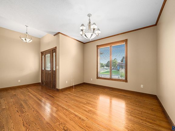 Make this Spacious 5-Bedroom Ranch Walk-Out Home with over 3,400 square feet in a Desirable South Side Sioux Falls Neighborhood your next chapter. The main floor offers 3 bedrooms, laundry, soaring 9’ & 10’ ceilings, hardwood floors, and elegant crown molding. The large living room features floor-to-ceiling windows and a gas fireplace to cozy up to. The kitchen has a dining room surrounded with bay windows with a large deck off the dining, & a formal dining off the living room to use as a dining room, office, or whatever you desire. The master suite is a true retreat with a whirlpool tub, shower, and double vanities. The lower level has a large family room with another gas fireplace, 2 beds, bathroom, a storm shelter, & a walk-out to another patio! Sit on the covered front porch, deck, or patio area! Perfect place to make your home with the easy access to anywhere in Sioux Falls with the interstates crossing close by! Updates include: Driveway repair, water heater & softener 2025, furnace, humidifier last 6 years, exterior paint & newly stained deck.