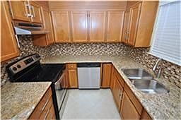 Beautiful two bedroom, two bathroom renovated in 2010 with gorgeous neutral ceramic tile and paint in all areas. Kitchen has granite countertops and glass backsplash with under-mount stainless steel sink and stainless steel appliances. Both bathrooms have been retiled and updated with granite countertops. Move-in-Ready.