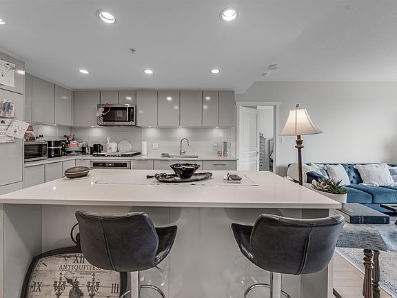 Spacious living spaceExpansive windowsSleek kitchenIntegrated appliancesGas stoveQuartz countertopsAmple cabinetry
