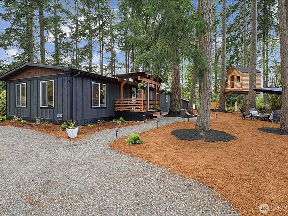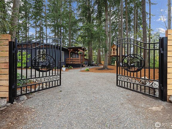 Discover the pinnacle of Rustic Lodge Luxury on Lake Dolloff. Set on a gated half-acre with lake access, this private estate offers timeless charm and opulent finishes throughout. Warm interiors feature rich wood flooring, custom shiplap, and a chef’s kitchen with a waterfall granite island and stainless steel appliances. The spa-inspired primary suite is a true retreat. Enjoy fishing or kayaking from your backyard, then unwind on the expansive deck or around the handcrafted fire pit with benches milled from on-site timber. A custom Tahoe-style Treehouse with zipline brings resort-style fun. Detached 600 sq ft garage offers endless DADU potential.