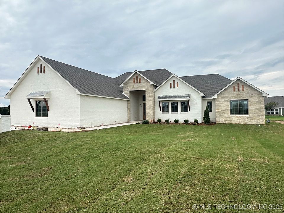 This beautiful Custom Home by Jaroh is waiting on you! Nestled on a sprawling 1-acre lot in the Meadows at Steely Farms, this exceptional custom residence combines luxury living with thoughtful design. Featuring 4 spacious bedrooms and an office ideal for remote work or study, this expansive layout ensures versatility and comfort for every member of the family. Step inside to discover soaring vaulted ceilings that enhance the openness of the main living areas. The sun-drenched den invites you to relax or entertain guests, while a well-appointed kitchen awaits culinary adventures with its modern amenities and ample counter space—perfect for friendly gatherings or holiday feasts. This home also offers saferoom—an essential feature designed with your family's safety in mind. With three full baths plus a convenient half bath, mornings will flow seamlessly as everyone prepares for their day without feeling rushed. The outdoor space is nothing short of spectacular! Step out onto your large covered patio featuring a cozy fireplace and plenty of room for backyard fun! Construction is still underway. You still have time to choose fixtures, paint and appliances!! Flooring has been installed and fixtures are being placed! Should be complete by the end of September!