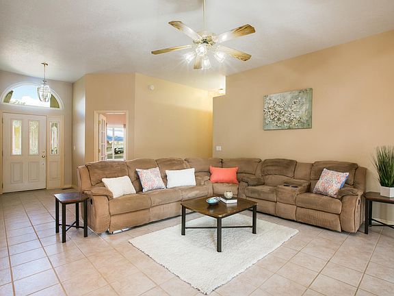 Welcome to this Bright, Beautiful, Single-Story Home in the sought-after Gleneagles Subdivision! Desirable Rio Rancho School District. East-Facing Home with Enchanting View of the Mountains. Warm and Homey, 3101 Ashkirk offers an Open Floor Plan and lots of Natural Light. Let a Gas Fireplace be your Family Room's Focal Point! This Home features 3 Bedrooms plus a Possible 4th or Study/Office/Creative Space. Open Kitchen w/ Newer Appliances & Breakfast Nook. Large Master Suite w/ Double Sinks, Garden Tub, and Separate Shower. Renewal by Andersen Windows with Lifetime Warranty! Refrigerated/Central Air! Backyard Access with room for RV Storage. Easy-Care Landscaping with Sprinkler System! Solar Panels save you money on electric! Owner Financing Available! Buyer to verify square footage.