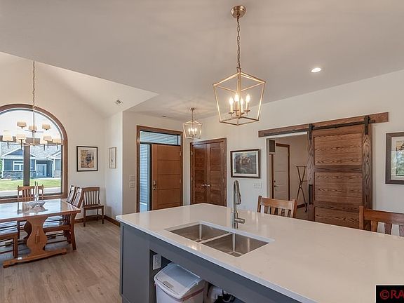 WOW! This absolutely immaculate hilltop patio home with upgraded finishes and nearly 1800 sq. ft. of one-level living will capture your attention as soon as you walk through the front door! The spacious, open concept design showcasing vaulted and tray ceilings maximizes the square footage nicely and you’ll love all the natural light that floods the space. The stylish kitchen features a substantial center island, Quartz countertops, plentiful storage, two sinks, tile backsplash, high-end stainless steel appliances which includes café double drawer dishwasher and range hood. The living room is highlighted by an impressive floor-to-ceiling stone fireplace with custom mantel and den with sliding doors that leads you to the wonderful private outdoor space boasting a large exposed aggregate patio with 12x14 pergola. The tour continues with the primary suite which features a tray ceiling, large walk-in closet, and private bathroom with roll-in custom shower. Next up is the 2nd bedroom and full bathroom with subway tile combination tub/shower. Completing this luxury patio home is the convenient mud/laundry room featuring a built-in bench with storage cubbies, and access to the oversized heated double garage. Upgrades include Anderson windows, remote controlled blinds, solid oak doors, storm shelter in mechanical room, designer selected flooring, and so much more! Association dues is $125/monthly that covers lawn care, irrigation, and snow removal. Lots to love here… don’t miss out!