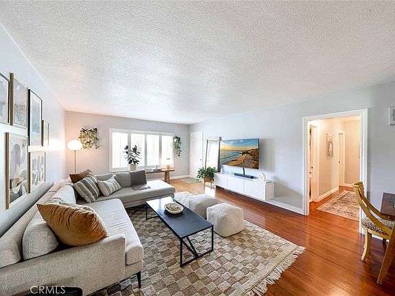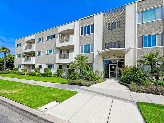 Welcome to Paloma Imperial! This turnkey, single story Bluff Park condo is close to the beach, shopping and restaurants! This renovated gem, with only 1 common wall, is conveniently located on the ground floor, and features 2 expansive bedrooms, 2 bathrooms, spacious kitchen, formal dining area, open living room, inside laundry with full-size stackable washer and dryer, and more. The bright kitchen includes a remodeled coffee bar, new brushed brass cabinet hardware, under cabinet lighting, stainless steel appliances including Maytag double oven and dishwasher, LG microwave, Samsung refrigerator, reverse osmosis water filter, and plenty of room for eating & entertaining! The separate dining area and kitchen both have sliding doors which lead to the interior common courtyard, which includes a lush green space and peaceful fountain. Elegant upgrades include new light fixtures, brushed brass door hardware throughout, hardwood and tile flooring, Plantation shutters, newer windows, ceiling fan in Master Bedroom, new toilets, and an EV charging outlet in the garage. Guest bathroom has been upgraded with new floor and wall tile, all new plumbing fixtures, custom solid oak vanity, soaking tub with shower and circular shower curtain, and more! The private enclosed patio off the living room provides space to enjoy coastal breezes while overlooking 2nd Street. The Mid-century style building, built by architect Paul McKenzie, features beautiful landscaping, secure entrances and a common garage area with built-in storage over the assigned parking space. This quiet community provides a serene escape in close proximity to wine bars, parks, entertainment, night life, and more!