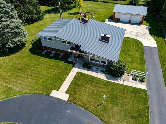 A Home That Has It All in the Clark-Shawnee School District? Here It Is! This sleek, spacious mid-century quad-level offers style, space, and updates galore—on over an acre! Park in the turnaround driveway and step into a tiled entryway with a lit display cabinet under the stairs. The main living room features a cozy fireplace, while the adjacent dining area shines with high ceilings and gorgeous lighting. The kitchen is a dream with quartz countertops, stainless steel appliances, and a window overlooking the backyard. Upstairs, hardwood floors lead to three bedrooms with generous closets and a beautifully finished full bath featuring a jetted tub and marble-top vanity. The primary bedroom includes a private balcony with updated railing and an all-weather door. Downstairs, enjoy a second full living space with newer (2023) LVP flooring and fresh paint, plus a sliding glass door for easy backyard access. A bonus room—office, den, or potential fourth bedroom—sits beside the second full bath and laundry area. The backyard is made for entertaining: a large concrete patio with fire pit, built-in pizza oven (not warranted), and plenty of gardening space. A one-car attached garage faces the rear for easy parking, while the oversized 24x32 two-car garage/outbuilding offers room for hobbies, storage, or even a workshop! Major improvements include a metal roof on both buildings (2019), triple-pane windows, a whole-house RainSoft water system, and radon mitigation—all contributing to comfort and peace of mind. This house truly has something for everyone!