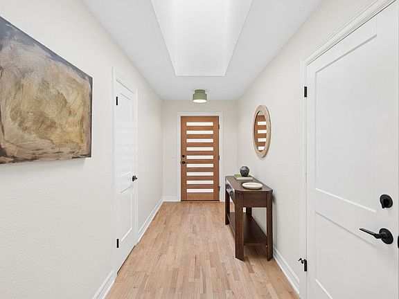 Pulling design elements from Scandinavia and the Southwest, you’re stepping into a midcentury modern home that would be a joy to live in. Step through the front door and look up—the James Turrell-inspired skylight with hidden LED lighting transforms the entryway into a gallery of light. Natural wood, warm tile, and pops of color greet you as you walk through the house. The original solid oak floors were lovingly refinished to their natural state, and additional wood elements like the custom shelves in the living and kitchen provide space to display what’s important. Natural light pours into the living room through a dramatic picture window and multiple skylights, while new windows throughout the home enhance energy efficiency and deliver crystal-clear views. The kitchen blends modern European-style cabinets with the earthy tones of Mexican saltillo tile. At its center, a 36” Forno professional-grade gas range with six burners and a removable griddle is paired with a seamless integrated range hood. Just off the kitchen, the breakfast nook doubles as a cozy hideaway. Built-in cabinets with hidden storage beneath create a bench-style seat that begs for pillows, a book, and views of the towering live oaks that shade the backyard. For entertaining, the adjacent dining room features a built-in bar with a 26-bottle refrigerator. The home offers a spacious primary bedroom with an en suite showcasing stunning tile work, ample closet space, and a moody, private water closet you’ll never want to leave. The guest bathroom highlights hand-crafted Moroccan Zellige tile and a vanity with plenty of storage. The yard has been refreshed with Texas native plants, new grass, and custom steel edging. The spacious, fenced backyard features a large covered patio and abundant space to entertain. Ask your realtor for the full list of updates.