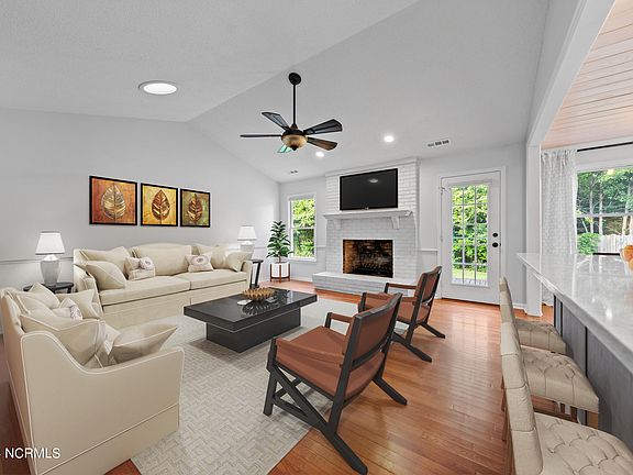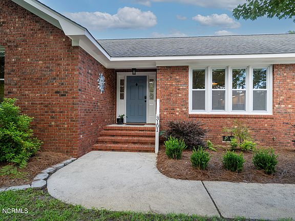 Welcome to your dream home nestled in the heart of Wilmington! This adorable brick 3-bedroom, 2 bath, 1.5 story residence exudes charm and comfort at every turn. As you step inside, you're greeted by an inviting open living room, kitchen, and dining room perfect for both daily living and entertaining. The remodeled kitchen boasts a gourmet 6-burner chef-style gas stove, pot filler faucet over the stove, large apron-front farmhouse sink, quartz countertops with a spacious island, under-sink water filter and a beverage fridge. The shiplap ceiling adds a coastal touch to this adorable kitchen! With hardwood floors throughout the main living areas, and a classic brick fireplace, this home offers both durability and functionality. Upstairs, discover a finished bonus room over the garage, ideal for a home office, playroom, or additional living space to suit your needs. Tucked away on a peaceful cul-de-sac and spanning 0.35 acres, enjoy privacy and tranquility while still being close to all the conveniences of city living. The privacy fenced backyard has an expansive deck to relax or entertain as well as an outdoor shower, great for rinsing off the sand after visiting one of the nearby local beaches, Wrightsville, and Carolina Beach, both only a 15-minute drive away. The backyard space offers an irrigation system with a new well pump, two detached sheds to give you plenty of extra storage. Outside, mature landscaping frames the property, enhancing its curb appeal and freeing up your time to enjoy several nearby parks, a Municipal Golf Course, a public kayak/boat launch, and walking/biking trails. Situated in a highly sought-after area with 5 different grocery stores within 5 minutes, this property is certain not to last long. Don't miss your chance to make this charming home yours and start creating lasting memories in a place you'll love to call home!