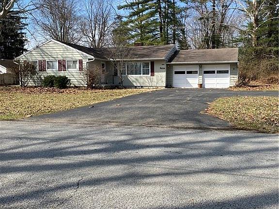 This serene 3 bedroom 1 bath ranch is nestled between the pines and mature sycamore trees.It has carpeting throughout. Property has great outdoor living space centered by the wood deck and adjacent fire pit. There is an attached 2 car garage and shed for additional storage. The full unfinished basement has a decorative stone fireplace and workshop area. If you like nature this half acre lot could be yours. Schedule a showing today.