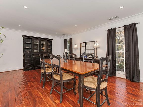 Welcome to your oasis in the city! Nestled in South Charlotte this lovely ranch home sits on 1.6 acres! You will enjoy this updated all-brick home with attached garage & huge backyard just waiting for your imagination. Inside you will find beautiful hand-scraped teak floors and spacious rooms including the large Dining Room & Family Room which opens to a wonderful sunroom/solarium filled with natural light, a vaulted ceiling and gorgeous views of the backyard. The kitchen is outfitted with Thermador Appliances including gas cooktop, double ovens (one is steam/convection) & counter-depth, built-in refrigerator. Plus the large kitchen island, abundance of cabinetry & area for a large table make this kitchen a dream! The spacious Primary Bedroom features a large custom walk-in closet & the Primary Bath offers a steam shower, soaking tub & heated floors. Newer Roof, HVAC, tankless water heater, too many details to list! Close to shopping, dining & entertainment. Sought-after schools!