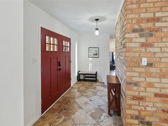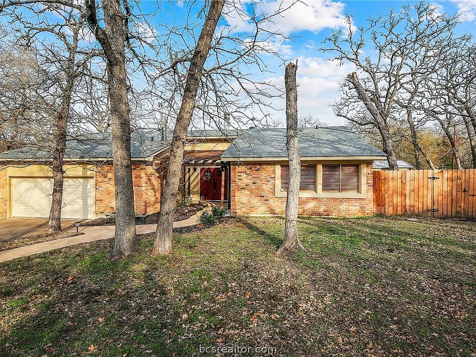 Fall in love with this unique Bryan home - classic 1970’s style with a modern twist! As you enter under the wood pergola and through the stunning red craftsman-style doors, you’ll immediately be drawn to the sunken living room, a signature feature of 70’s architecture that adds depth and character to the space. Perfect for relaxing and entertaining guests, and the large windows provide plenty of natural light to brighten the room. The updated kitchen features granite countertops, subway tile backsplash, and a complete matching set of recent Samsung stainless kitchen appliances. You’ll love spending time in the spacious screened-in porch just off the kitchen, where you’ll enjoy looking over the lush landscape and trees of the large backyard. Featuring a split floorplan, the primary bedroom has an ensuite bath and two large closets. This property sits on an enormous 0.40 acre lot, with tall oaks and other native foliage shading the lot. Morgan shed in backyard provides great storage! Fantastic location – Less than three miles to Texas A&M, and easy access to FUJIFILM Diosynth and the Vet School! New roof 2021! Recent HVAC system well maintained. Refrigerator, washing machine, dryer, and gun safe convey with property. New sliding glass door will be installed in living room on March 3rd. Schedule your tour today and make this house your home!