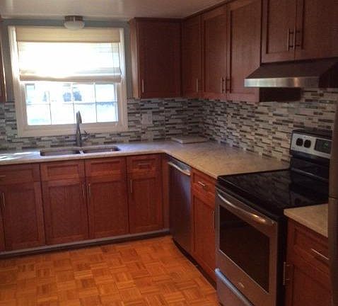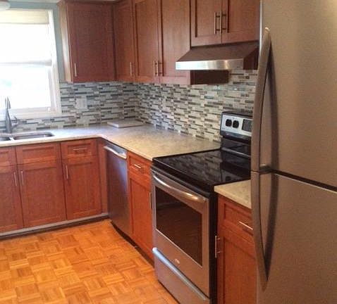 This town home has the best location in The Forest! Brick 3-level end unit featuring completely updated kitchen with glass backsplash, marble counter tops, cherry cabinets and stainless appliances. Extra large great room w/ bay window & parquet flooring. 3 BRs & 2 full ceramic baths upstairs, half bath on main and another on the terrace level, along with utility room and family room with access to private rear patio. Move in ready!