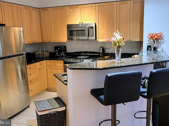 Move-in ready, spacious, bright and quiet studio/efficiency perched on a high floor in The Northampton Place, Alexandria condominium building. Washer and dryer in unit, with full kitchen and eat-in counter/bar, granite counter tops, stainless steel refrigerator with ice maker, electric stove, dishwasher, extensive maple cabinetry and storage, and brand new microwave. Plenty of storage and closet space includes two spacious double, mirrored closets and front hall coat closet. One assigned underground garage parking space 242 on G2, and one assigned storage space in garage 141. Extensive onsite amenities include: business center, fitness center, sauna, fire pit, outdoor pool, lounge with a fireplace, game room, and indoor common rooms available for events and work space and with full kitchen and bar. Owner pays for condo fee which includes: concierge/24 hour front desk, onsite resident manager and semiannual HVAC servicing. Utilities are Dominion Electric and Comcast (paid by tenant). $400 non-refundable move-in fee and $250 refundable elevator use fee. Location is a 10! Down the street from the new Harris Teeter grocery store, Silver Diner, the W&OD scenic exercise trail and dog park. Minutes to Shirlington Village dining, movie theater, shopping, coffee house, fitness, juice bar, library and pubs. Metro bus to the Pentagon and DASH bus to King Street metro station. Near Amazon HQ2 (4.8 miles), Virginia Tech Innovation Campus (4.2 miles), The Pentagon (4.4 miles). Close to I-395 (1.2 miles), King Street metro (3.7 miles), Crystal City metro (4.8 miles). All distances are approximate. Minimum credit score of 720. Available January 1, 2025.