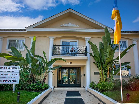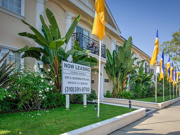 Colonial Gardens is located at the corner of Barrington Ave. and National Blvd. on the west side of the 405 Freeway. We provide easy access to both the 405 and 10 Freeways, public transportation to Santa Monica and Westwood and minutes driving to Century City, Marina Del Rey, Venice and Brentwood. Our beautiful landscaped open courtyard style buildings offer spacious remodeled and updated one and two bedroom apartments with balconies/patios. Come enjoy the best weather, shopping, dining and entertainment in the world, all within minutes away.