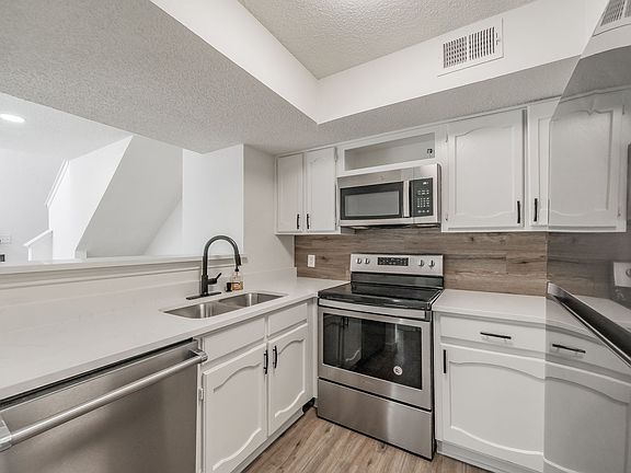 Refreshing poolFresh paintStainless steel appliancesStacked washer and dryerDurable hard surface flooringCovered parking space