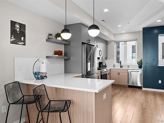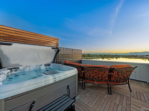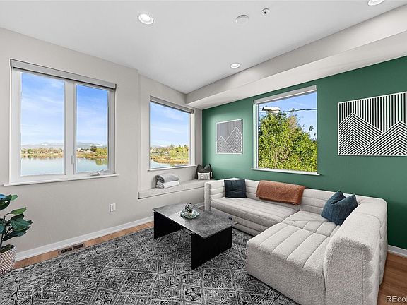 Built in 2021, this modern 2-bedroom, 3-bathroom residence blends luxury finishes w/ smart functionality—and comes w/ the bonus of eligibility for mid-term rentals up to six months per year or long term rentals, making it an exceptional opportunity. The interior boasts a bright, open layout w/ high ceilings, smart home technology, and contemporary design. The main level features a sleek kitchen outfitted w/ quartz counters, smart appliances, and an upgraded pantry, flowing seamlessly into the spacious living area complete w/ electric remote controlled shades and custom lighting. Upstairs, the primary suite offers a peaceful retreat with new carpet, a large closet, and a beautiful ensuite bathroom w/ a walk-in shower. The secondary bedroom is equally impressive w/ its own ensuite bath, built-in Murphy bed, walk-in closet, and a private sauna—bringing the luxury of a wellness spa right into your home. One of the home’s most striking features is the upgraded rooftop deck, installed on a Bison pedestal system w/ panoramic lake and mountain views. Perfect for entertaining or relaxing, the rooftop space includes a hot tub, fire pit, gas grill w/ a direct gas line hookup, and an outdoor TV. Enjoy the Colorado sunset year-round from one of the best rooftop setups in the entire community. Additional upgrades include a 220-volt EV charging outlet in the attached garage, a fire suppression system, smart security features, and thoughtfully added storage throughout. Direct access to Rocky Mountain Lake Park, with Sloan’s Lake, Tennyson Street dining, and the commuter rail just minutes away. The lake is stocked with fish, so you can fish, paddle board, and canoe.
