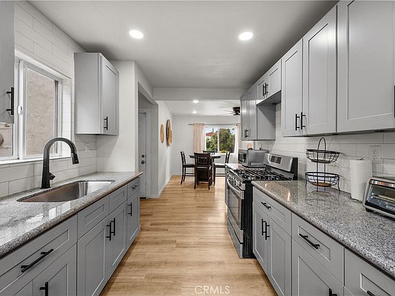 The kitchen is a culinary enthusiast's dream, featuring sleek countertops, stainless steel appliances, recessed lighting, and ample cabinet space. Both bedrooms are well-proportioned, with large windows that flood the rooms with natural light. The remodeled bathroom boasts a clean, modern design with high-quality upgrades throughout.