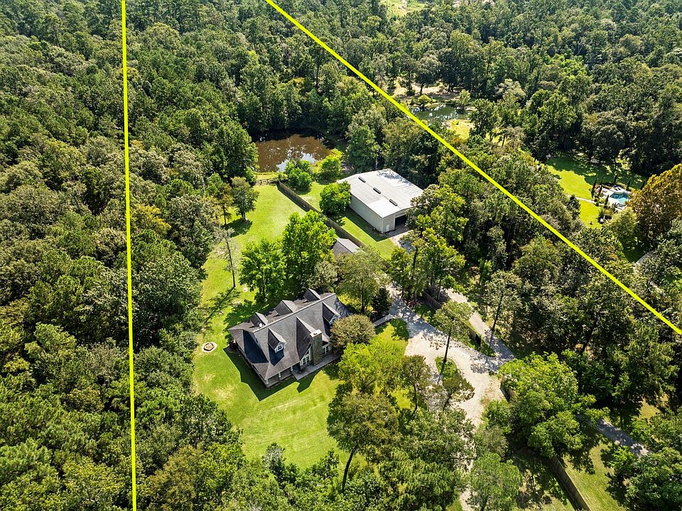 PRICE ADJUSTMENT JUST MADE!! RARE 5.16 ACRES!!! INCREDIBLE LOCATION! GORGEOUS HOME, POND & HUGE 40'x75'WORKSHOP. 2 entrances w 2 gates. Property can be separated if you desire. Don't miss out! Discover tranquility just minutes from The Woodlands, Magnolia, Conroe, Montgomery & Tomball! Pristine property w pond boasts 4 bedrooms & 3 full baths, including a unique separate double primary suite on first floor. Stunning living room features a vaulted ceiling & a charming wood-burning stone fireplace, seamlessly connected to the open-concept dining & kitchen. Enjoy brand new flooring throughout the home, a newly installed crushed concrete driveway, a new iron gate & Key Master opener w pedestal. The home freshly painted inside & out. The HVAC systems-newer, roof 8 yo. Relax on wrap-around porch, complete w fans or spend your evenings fishing in fully stocked pond at the back of property. Workshop has additional covered "lean to" space of 20x75' ready for foundation. Incredible opportunity!